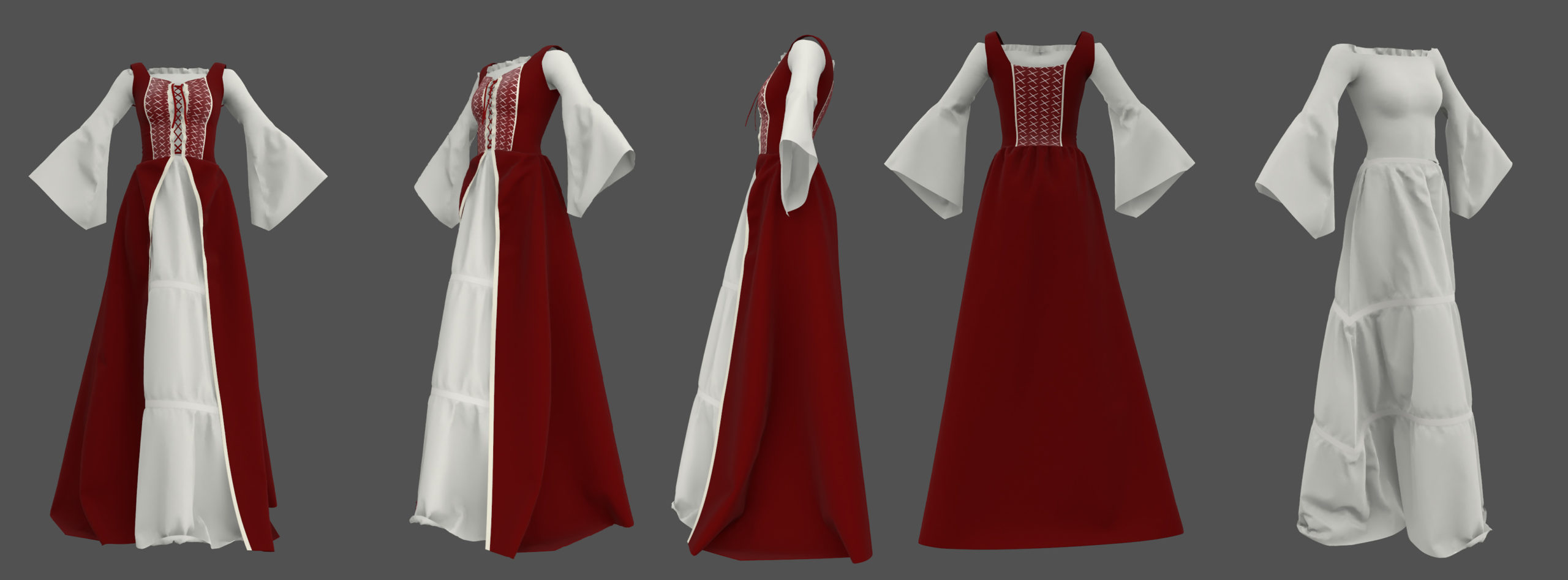 Medieval DressesTwo medieval style dresses made in Marvelous Designer and Substance Designer. Made in April 2022.